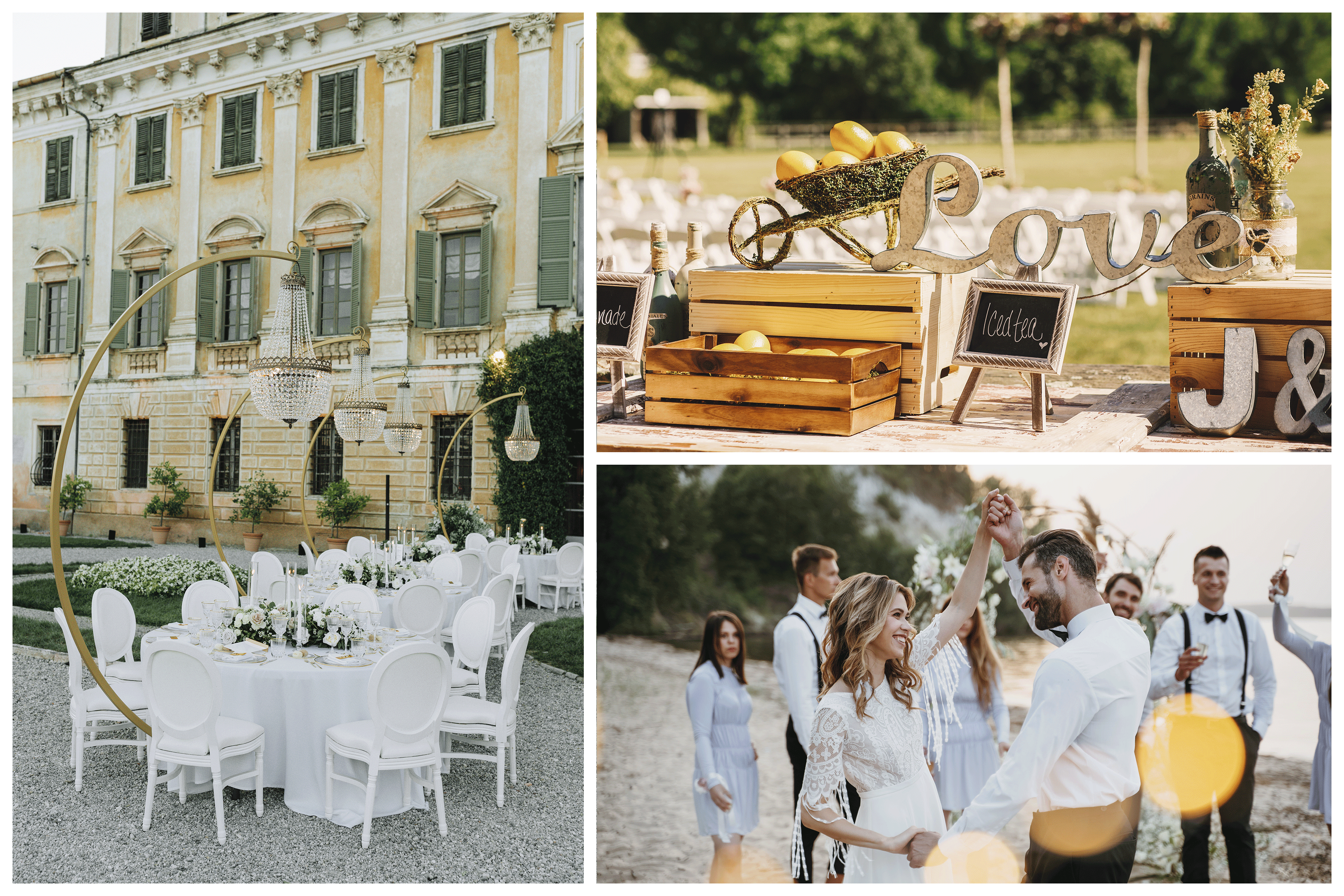 Considera la Location: la location può influenzare il tema. Una villa storica si presta a uno stile vintage, mentre un agriturismo è perfetto per un matrimonio rustico.