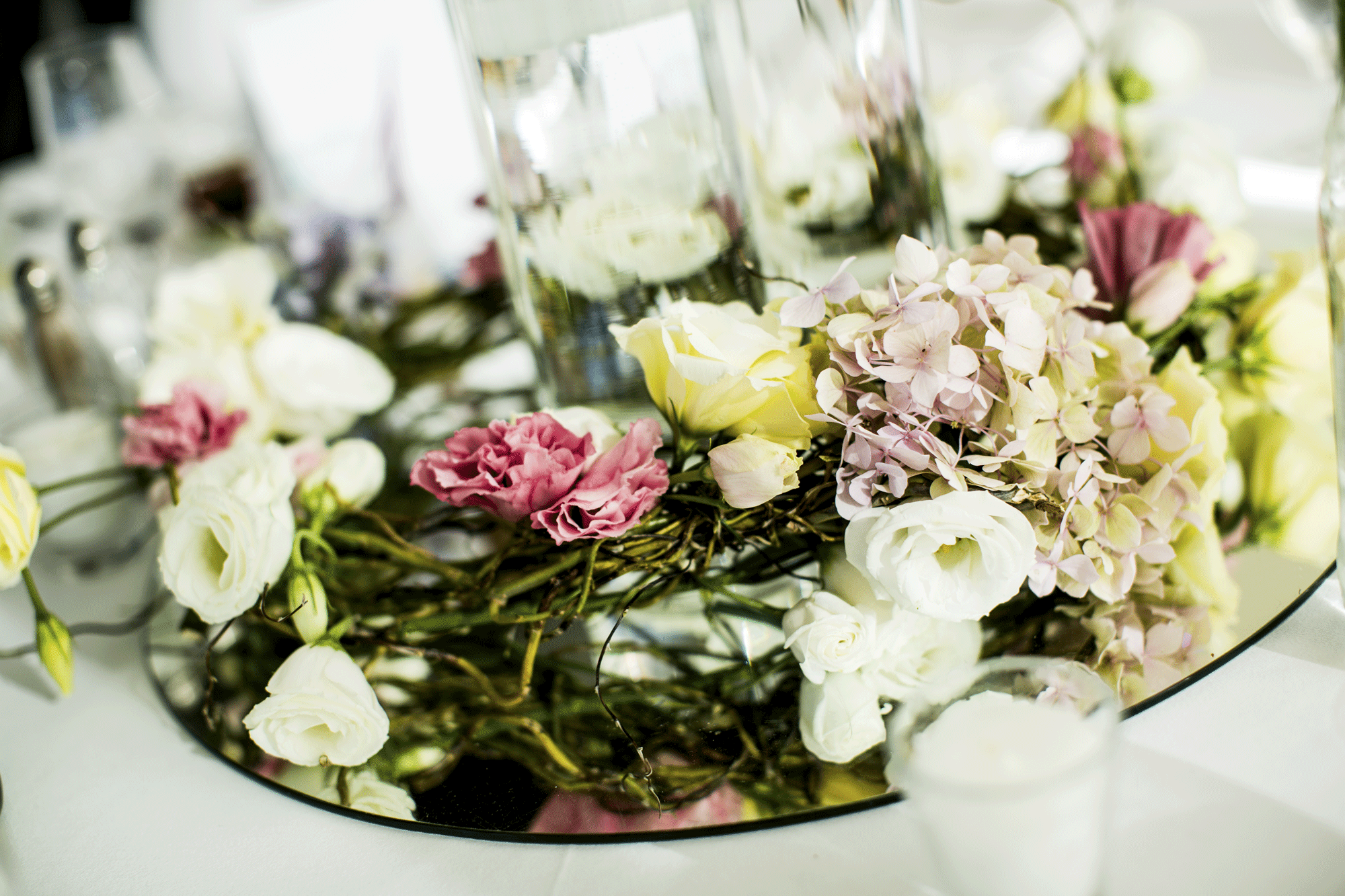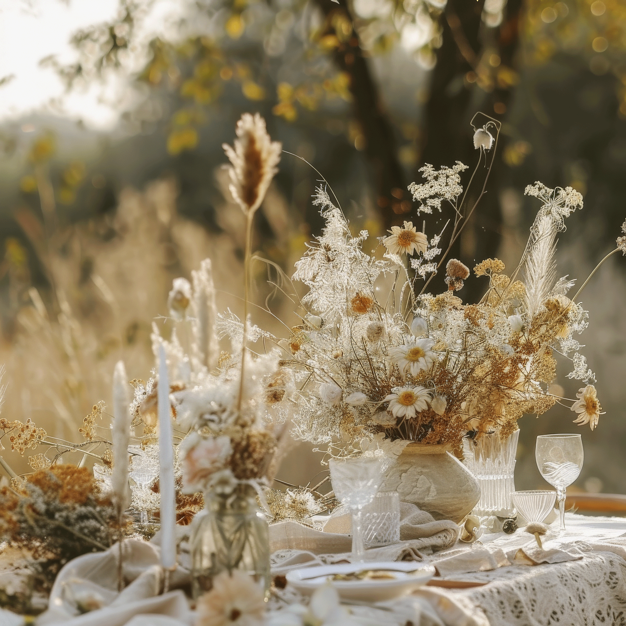 - Centrotavola personalizzati con fiori, candele e dettagli originali.